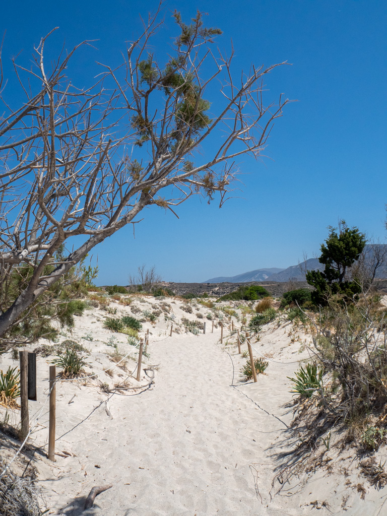 K pláži Preveli je ze západní strany, kde se nachází hlavní parkoviště poněkud náročný přístup. Čeká vás cca dvacetiminutová strmá cesta dolů, kterou nedoporučuji absolvovat v žabkách. Cesta nahoru pak trvá o něco déle, záleží jak moc jste fit. Mnohem kratší a příjemnější přístup k pláži získáte, pokud zaparkujete na východní straně u taverny Dionyssos, kde se pak dá i skvěle najíst.