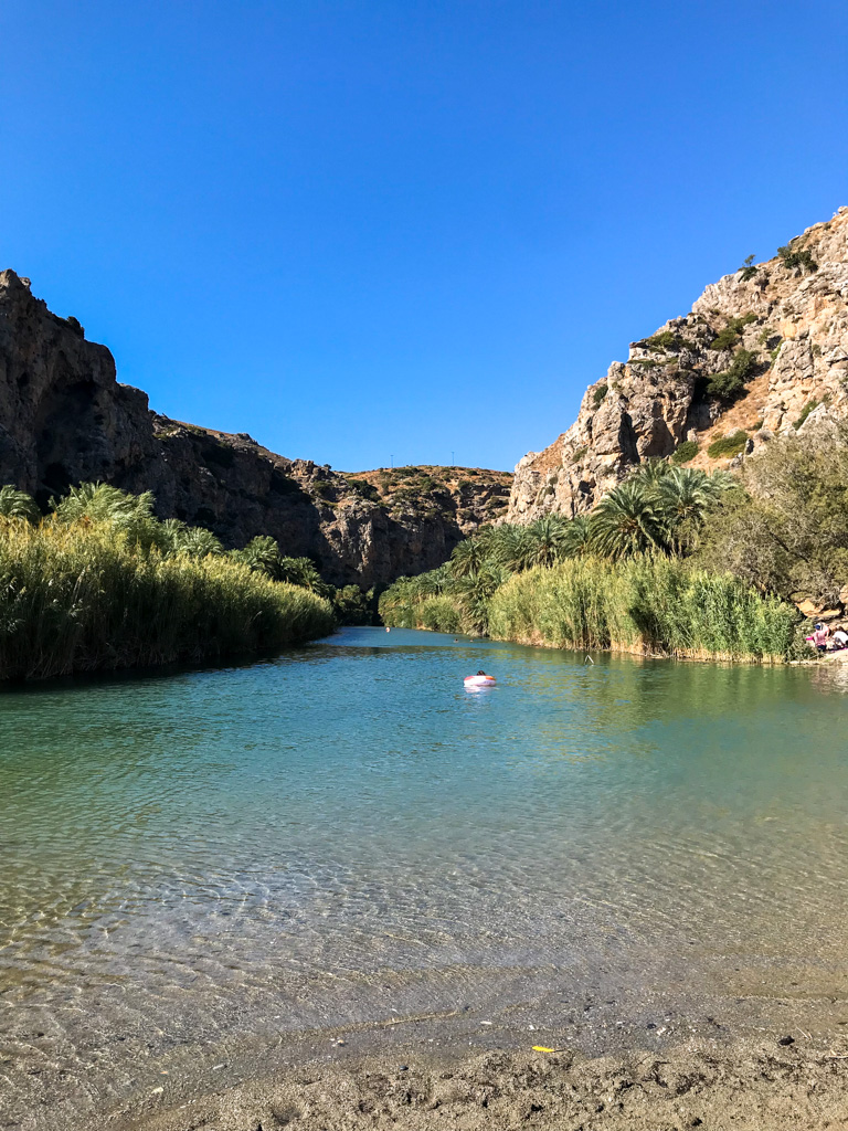 Cesta k jedinému sladkovodnímu jezeru na Krétě – jezeru Kournas byla trošku dobrodružství. Autobusem jsme dojeli do zastávky Kavros a poté pokračovali cca 5 km podle Google Maps, které nejsou vždy úplně spolehlivé, jak se ukázalo. K jezeru, které je obklopené vysokými horami a olivovými háji jsme nakonec došli.