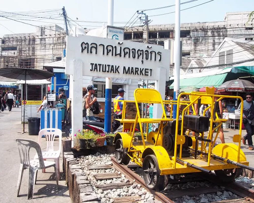 Asi 70 kilometrů jihovýchodně od Bangkoku najdete tento unikátní trh. Ten je známý tím, že je postaven přímo na železničních kolejích. Několikrát denně projíždí trhem vlak a prodejci musí rychle stáhnout své zboží, aby uvolnili cestu. Funguje už více než 100 let a patří mezi oblíbené turistické atrakce.